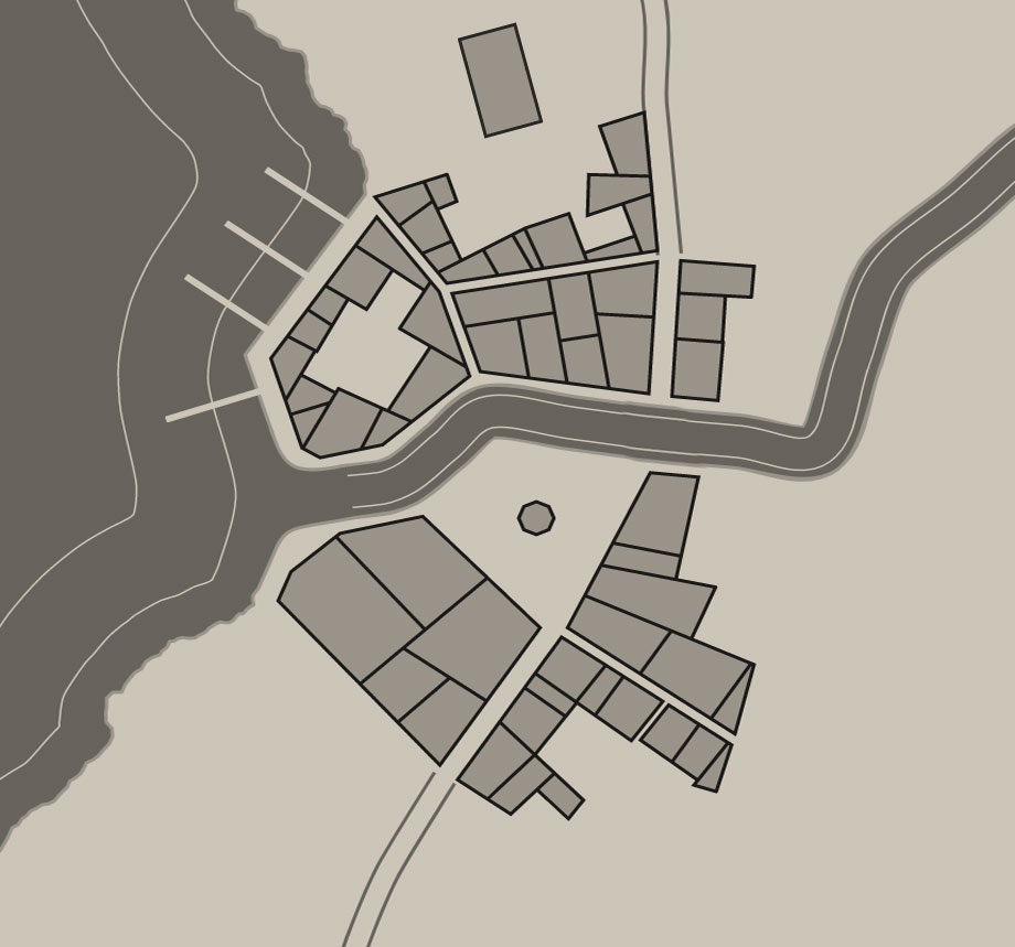 Jakaar sits on the eastern shore of Lake Volgoma, at the outlet of a small river named the Felic - north of the mouth of the river Eanor and south of the river Malgomor. The town was established in -11, by one of the first migration waves from Alberetor across the Titans. The town received its name from the black hound that howled on the beach when the first homesteaders were looking for a location to settle.