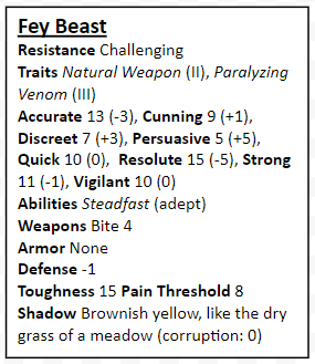 Near the borders of Davokar there lies a town named Eldun. Eldun and the surrounding lands are the prowling grounds of the Tiarna. They are cruel creatures, who drink the remaining days of those that catch their fancy. Elves do not visit these lands, for fear that these creatures might swallow their elder lives. Many men of Eldun worship the Tiarna, praying that they to spare their families.