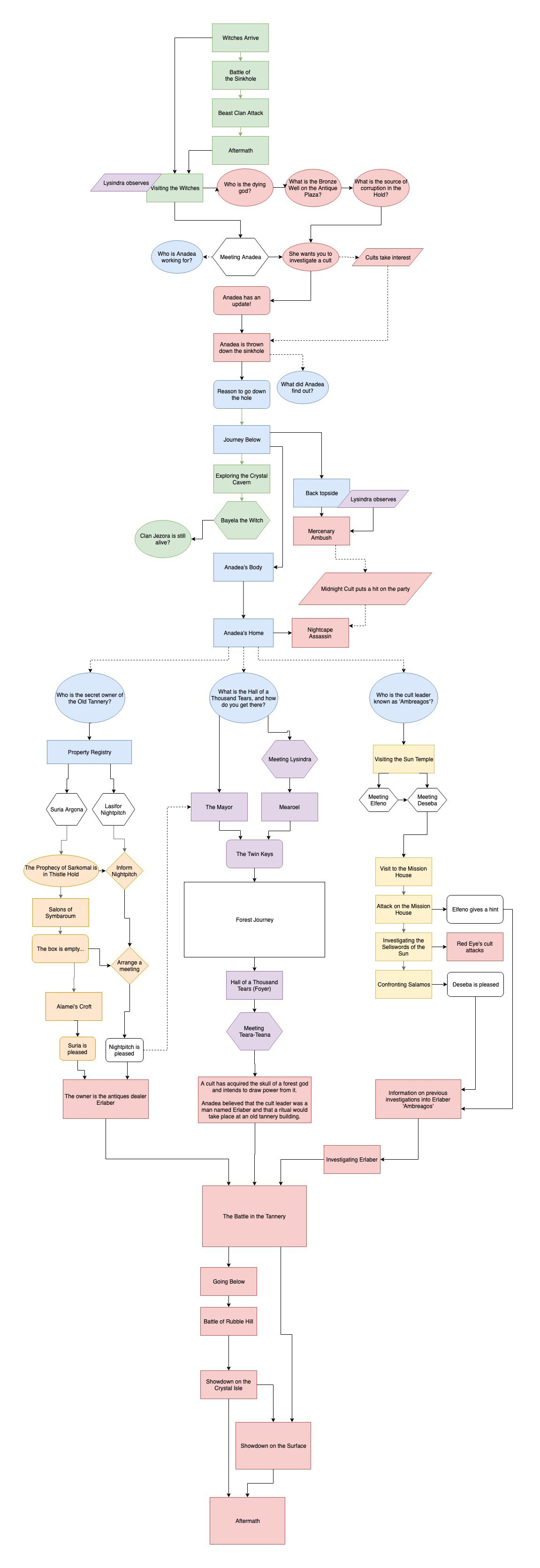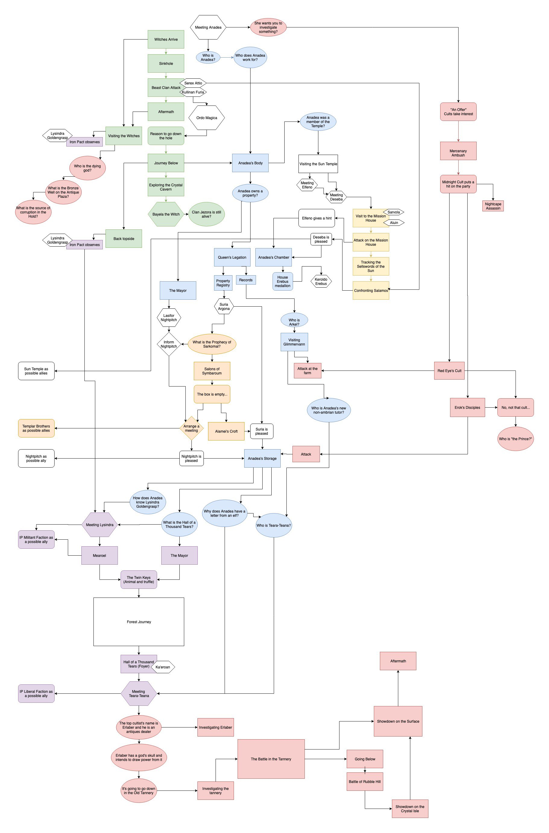 Oh also, the church side-quest (in yellow on my flowcharts) goes absolutely nowhere. It could be 2-3 sessions completely wasted.
